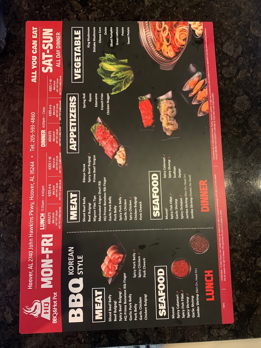 Choice of Cajun, Lemon Pepper, Garlic Butter, or Juicy Special. Spice levels range from No Spicy to Extra Hot.